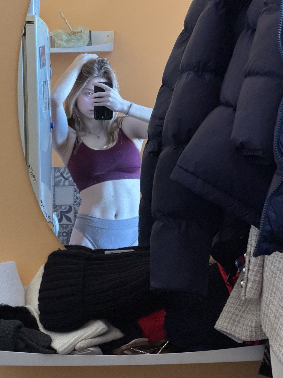 Description: Sexy whore Angelina showing off her ass, pussy, natural tits and body